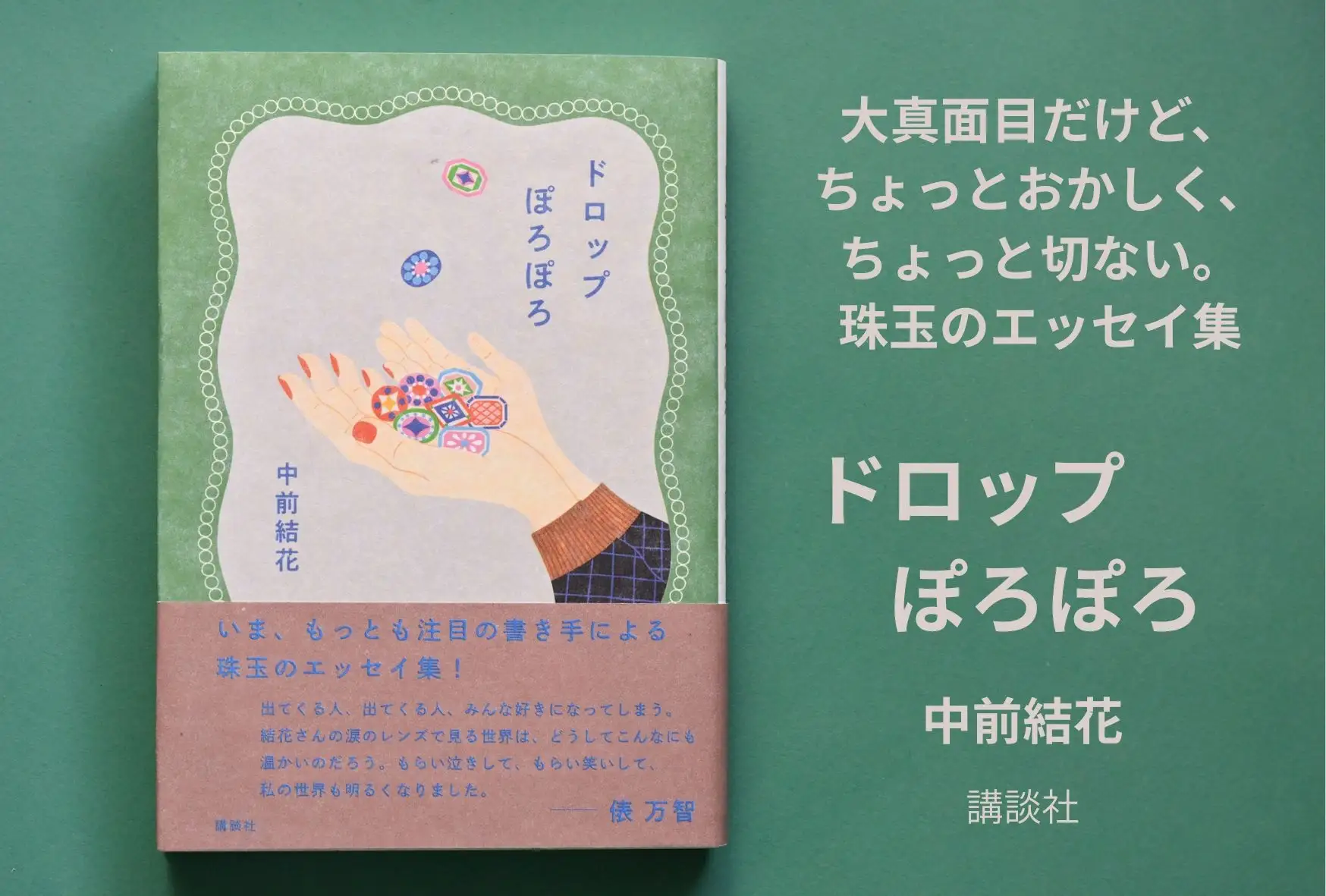 そんな私たちの心に、そっと寄り添い、優しく語りかけてくれる一冊が、まもなく世に出ます。エッセイスト・中前結花さんの待望の新刊『ドロップぽろぽろ』です。この本が私のもとに届いた時、すぐにページを開きました。そして、読み進めるうちに、気づけば私の頬にも、温かいしずくがぽろぽろとこぼれ落ちていました。